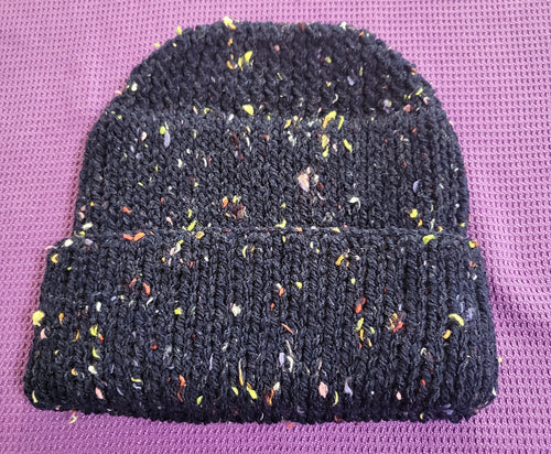 Flat top beanie - black/grey with a hint of burgandy/pink