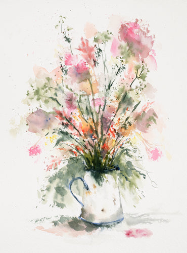 Spray of Flowers in Metal Milk Jug 28 x 42cm Signed Print