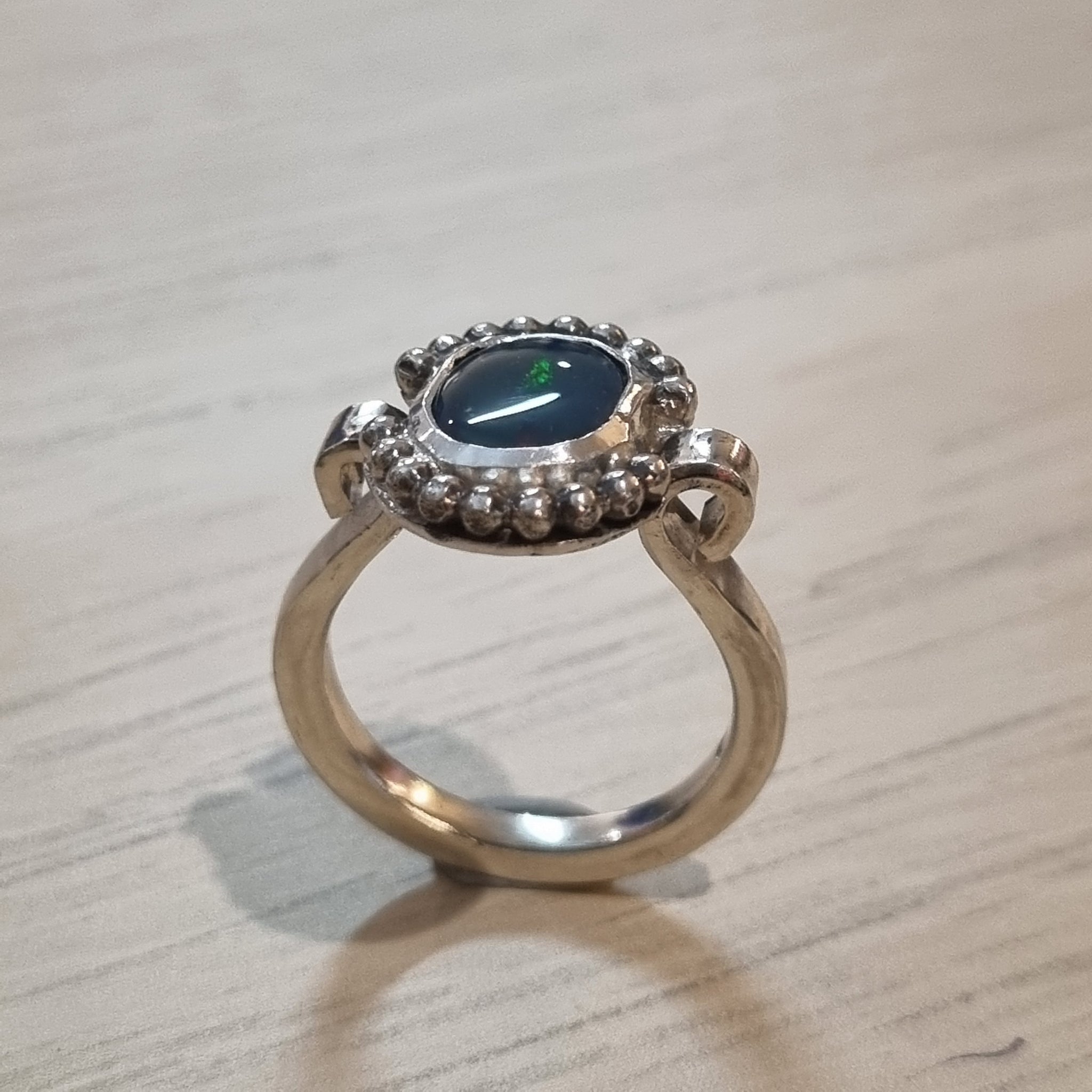 • Load image into Gallery viewer, Lightning Ridge Opal & Sterling Silver Ring
