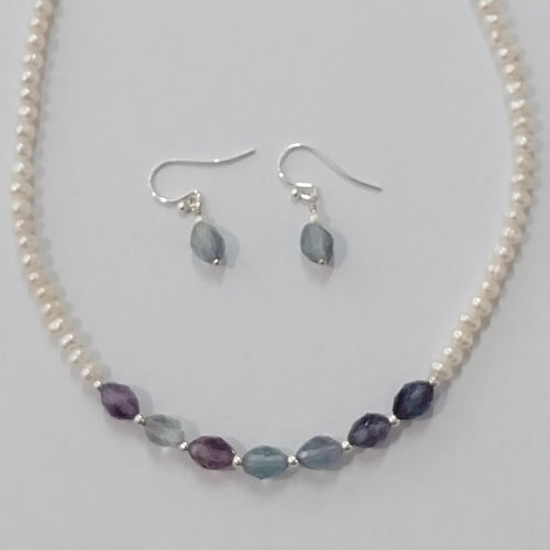 Fresh Water Seed Pearl & Fluorite Necklace with Matching Earrings