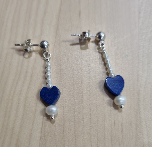 Lapis Lazuli Heart & 6 Freshwater Pearl Studs