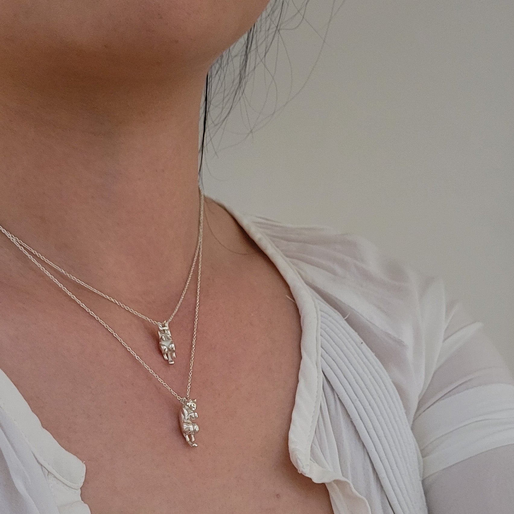 Could not forget the classic pose of being picked up by the scruff of her neck. Now she gets to dangle from your neck wherever you go!